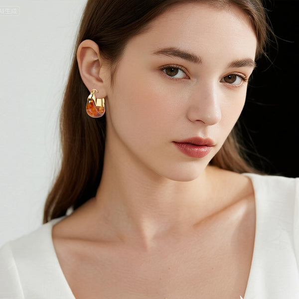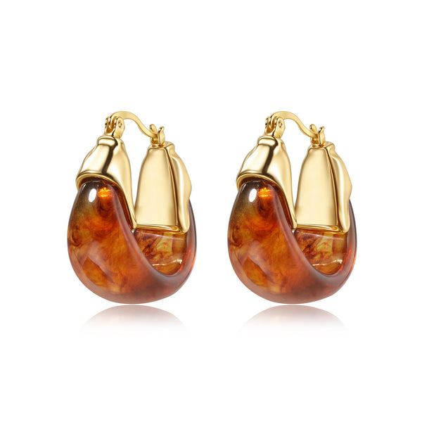 - ELEGANT GOLD HOOP EARRINGS – These gold earrings feature a bold chunky hoop design that makes a statement. The amber resin(Each piece is unique variations and translucent layers, creating a visual effect that captures light beautifully.) offers a timeless and classic look. A must have jewelry for everyday wear and special occasions.