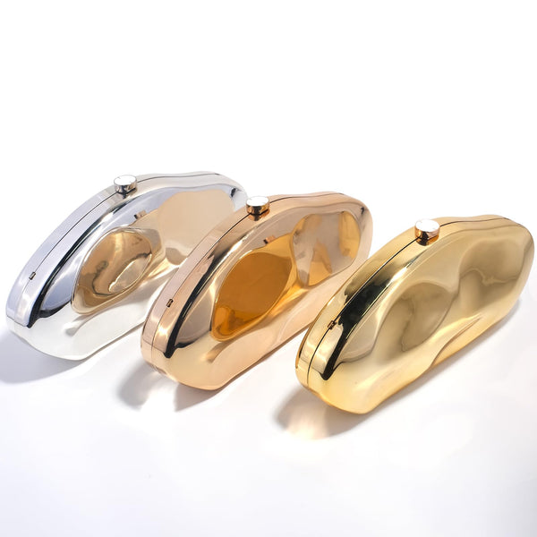 - Unique Design - The gold purse has 4 geometric concave on the surface, with a metallic luster, making it full of fashion sense. The top of the gold clutch is equipped with a white simulated enamel button, magnetic closure.