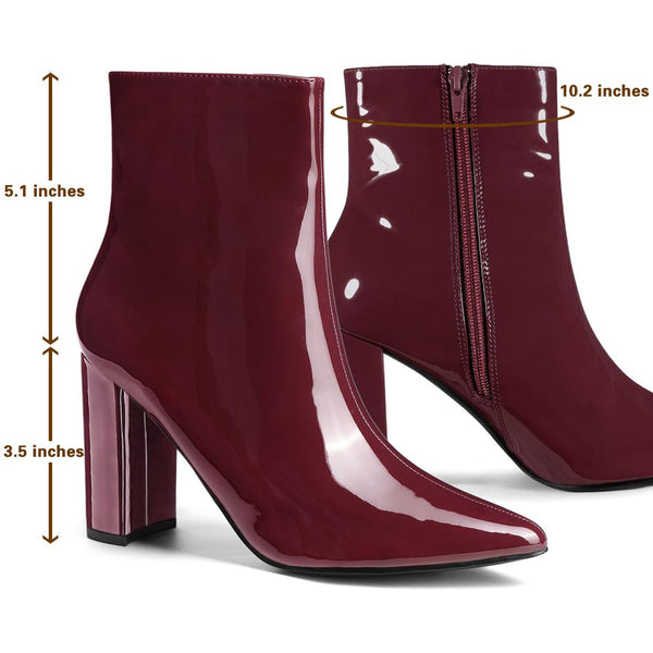 - Patent Leather Ankle Boots, Block Heel, Pointed Toe
