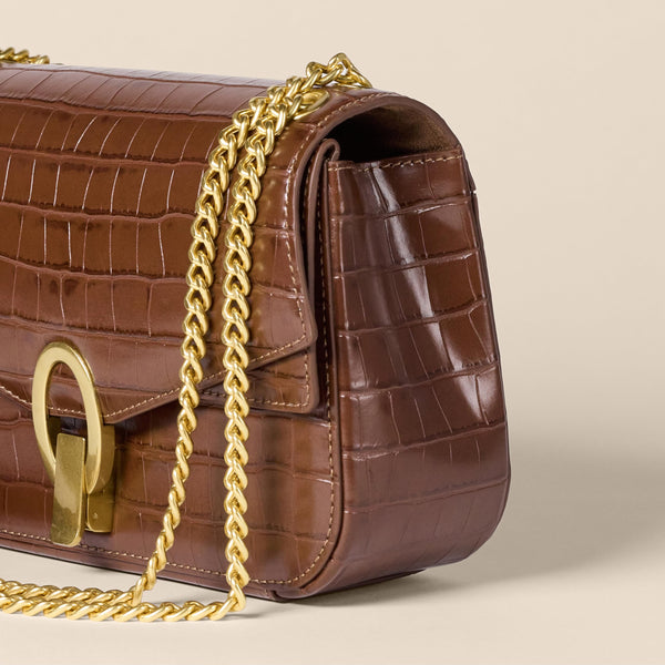 - MATERIAL: This bag is made from high-quality alternative leather materials. This style is available in faux calfskin or crocodile leather and features a chain strap and a metal lock