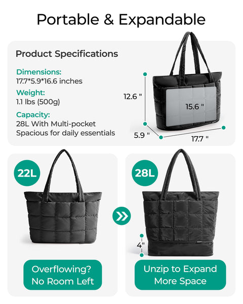 - Versatile Tote Bag: A regular handle and a pass-through luggage strap of our puffer tote bag allows you tote it or across the luggage according to your need, perfect for sports, weekend trips, gym, travel, business and overnight bag