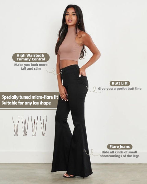 - ▼▼ FEATURES - Simple, stylish, stretchy jean featuring close fit through hip and thigh and arcuate stitching at back pockets, perfectly shapes your curves, with a soft and stretchy denim fabrication that maintains Flare shape throughout the day.
