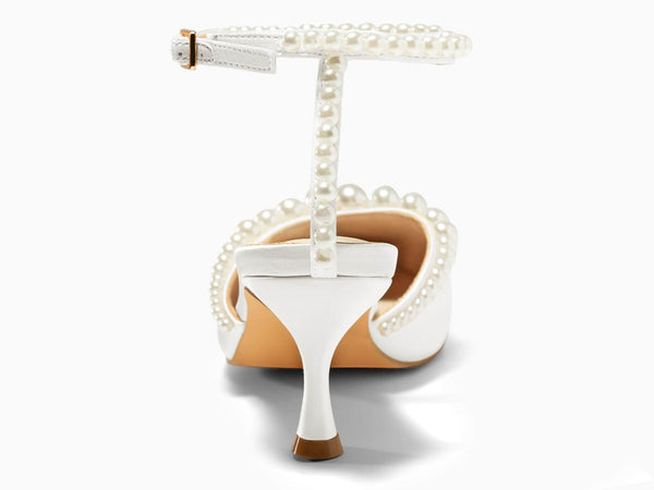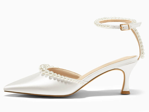 - Pearl-Encrusted Glamour: Elevate your look with these kitten heels adorned with exquisite pearl details at the shoe opening and ankle strap. They add a touch of luxury to any special occasion ensemble