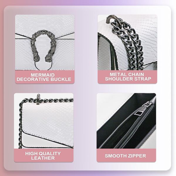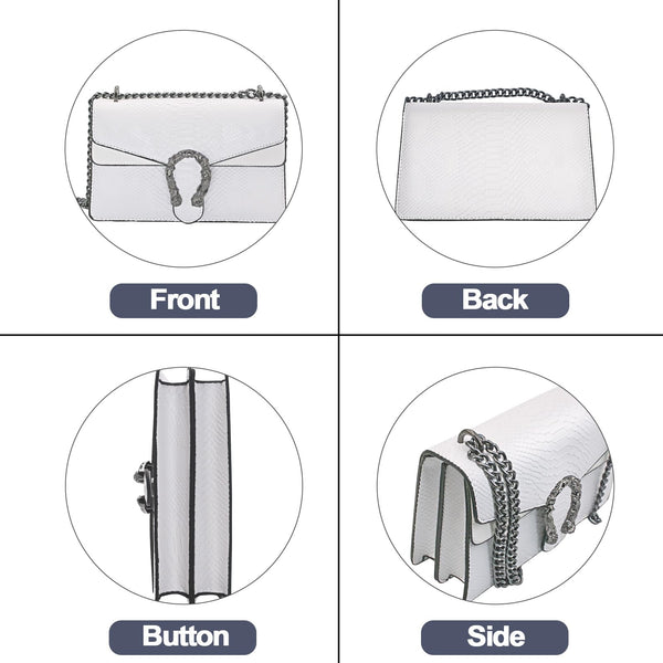 - 【Material】The white shoulder bag is made of PU Leather with snake print , which is exquisite and durable.The color of the crossbody bag is full and shiny.