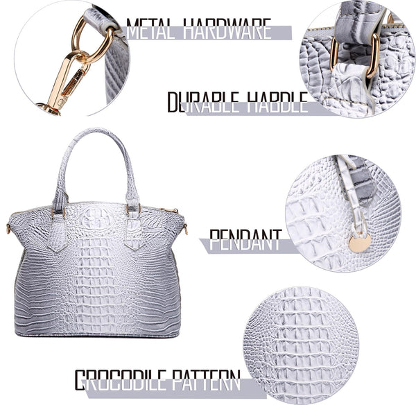 - High Quality Material: This handbag is made of high-quality, water-resistant, and scratch-resistant faux leather with a crocodile print. The shiny and textured exterior, along with the gold zippers and sturdy hardware, adds to its durability and stylish appeal. The soft and comfortable lining ensures the protection of your belongings