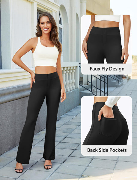 - Bootcut Leg Design: These womens slacks are designed with a stylish bootcut silhouette that elongates the legs and allows for greater freedom of movement. The extra space around the calves and ankles makes bending, squatting, or sitting easier and more comfortable, providing all-day wearability