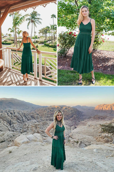 - Washing tips: machine wash or hand wash the maxi long dress, cold gentle with like colors. Tumble dry low iron low. Please refer to the size chart before your purchase. The fabric creases very easily. Use your iron/steam to quickly remove wrinkles in the dress. Beach wedding guest dresses for women, women's wedding guest dresses, lace dresses for wedding guest, green dresses for women wedding guest, dress for wedding guest, evening dresses for wedding guest.