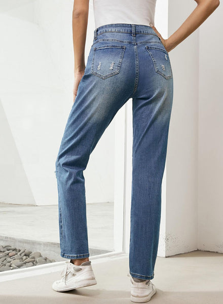 - Material:The boyfriend ripped jeans are made of soft and airy fabric to provide you with comfort. These mid-rise straight ankle patchwork pants feature ripped accents and distressed details, making them perfect for all-day wear.