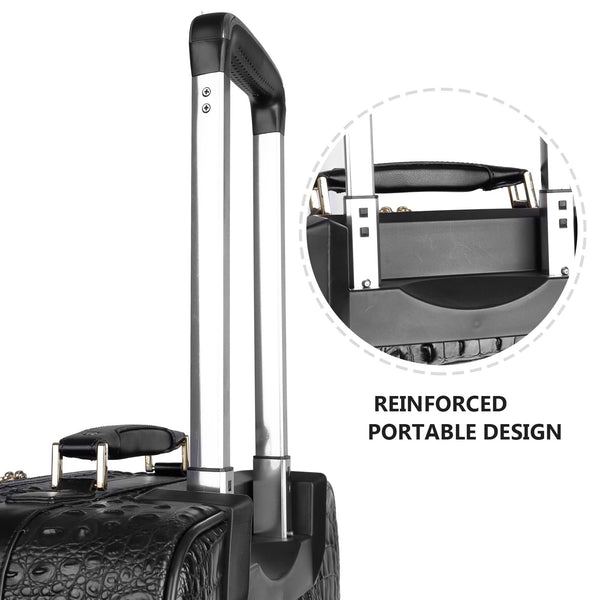 - TOP QUALITY LUGGAGE; Made of brand new Abrasion resistant PVC+Croco PU Leather materials for softshell, Reinforced back plate, thickened tie rod,Flexible and silent spinner wheels ,Fashionable appearance and high quality greatly increase the joy of our journey