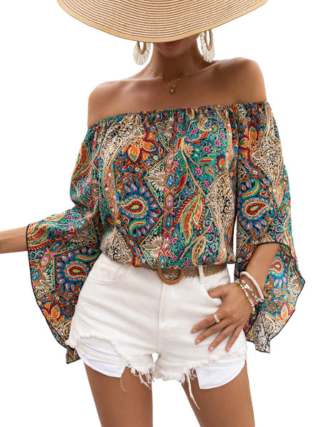 - Feature: Off the shoulder, 3/4 sleeve, trumpet sleeve, oversized blouse top