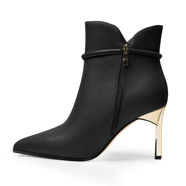 - 1. Boots for women: These pointed-toe women's boots features a smooth zipper for easy to putting on and taking off. The 3-inch gold kitten heels offers a unique and exquisite design.