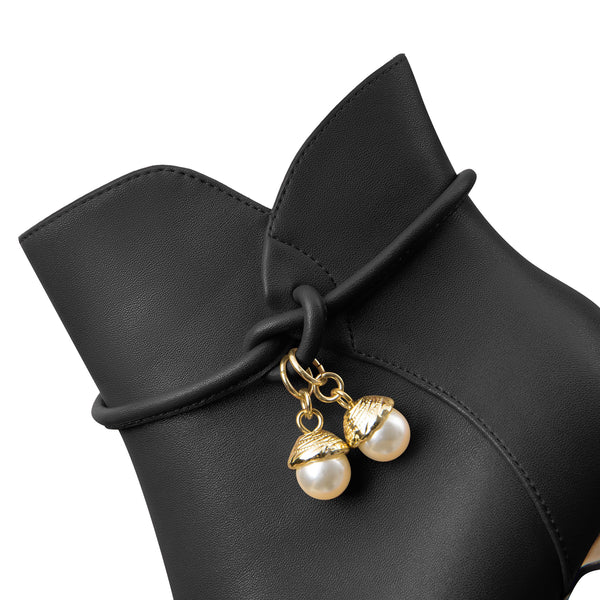 - 2. Classic Fashion: The pointed toe and side V-shaped cutout design add a modern and fashionable style, infusing these ankle boots for women with a fashionable vibe and ensuring that your style is both simple and unique. The side pearl accessories add a cute touch to the shoes.