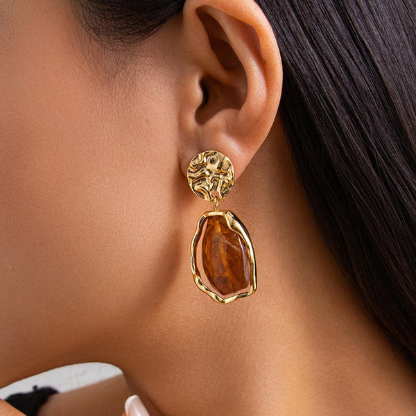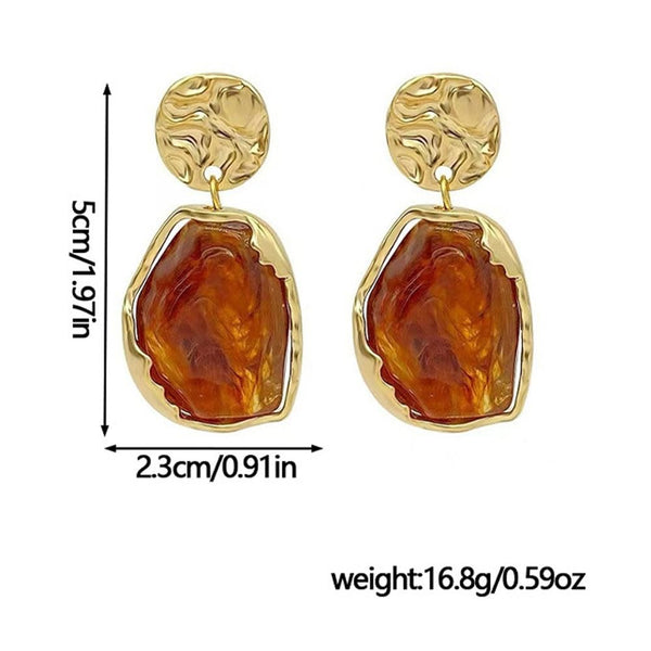 Use these golden-brown personalized pendant earrings to enhance your overall look - here, a blend of retro charm and modern style is achieved. These long-drop earrings feature a unique irregular crystal design and retro geometric patterns, combining exaggerated crystal details with rugged brown drop styles to create a distinctive look. They are made with gold plating, exuding retro charm while maintaining a fashionable trendiness, suitable for formal occasions, beauty pageants, or as accessories for cocktail parties. Whether as winter accessories or Christmas gifts, these exquisite and bold earrings can add a touch of charm to any outfit, whether it's for a special date or adding a sparkle to your daily wear