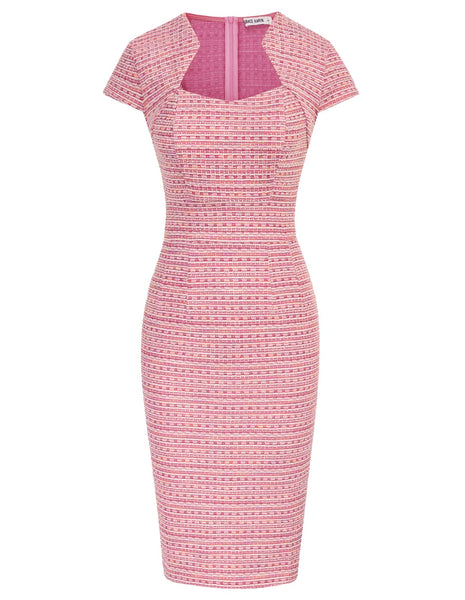 - FEATURES: Bodycon pencil dress; 50s style; cap sleeves; v-neck; back zipper; tweed plaid pattern, slim fit, strechy fabric