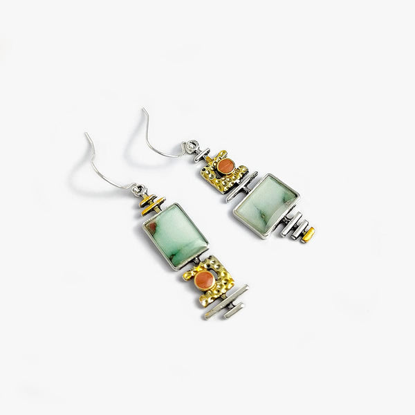 - The clash of gold, silver and green colors and the novel shape make these bohemian earrings simple yet unique.