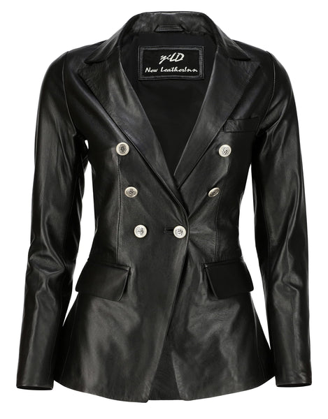 - This Blazer Jackets for Women makes for a Traditional and Superior quality project. Made with Genuine Napa Leather features Fancy Silver Buttons; Single back vent; 1-button front closure; Two flapped pockets on the waist area; One stylish pocket on the left chest side.