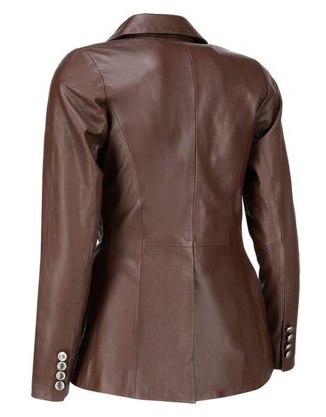 - This Blazer Jackets for Women makes for a Traditional and Superior quality project. Made with Genuine Napa Leather features Fancy Silver Buttons; Single back vent; 1-button front closure; Two flapped pockets on the waist area; One stylish pocket on the left chest side.