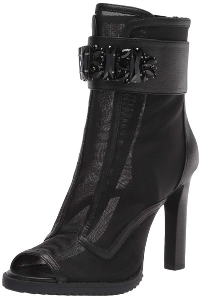 - Chic Design: Peep toe mesh women's bootie with jewel embellishment across the upper for a bold, fashion-forward look.