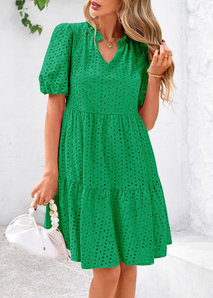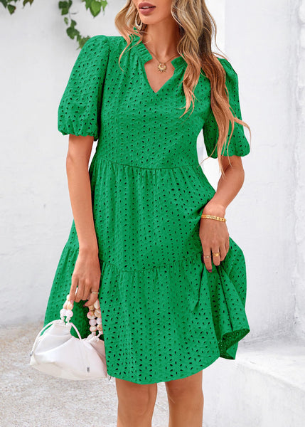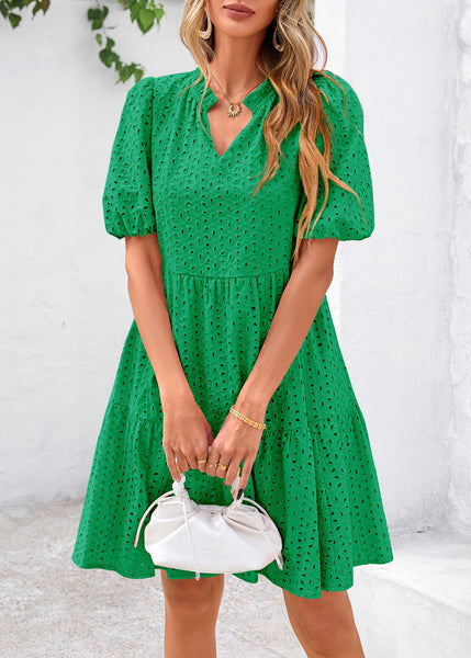 - Chic Design: Casual Summer Dresses For Women Feature Lace Embroidery Hollow Out Eyelet Design With short lantern sleeve Details That Adds a Touch Of Elegance And Sophistication To Your Look. The Elasticized Waistband At The Back Elevates Wearing Comfort, And Two Slant Pockets Provide Convenient Storage Space For Essentials