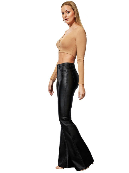 - ❤Flattering Fit: These faux leather flare pants' mid-waist design complements all body shapes, providing a flattering fit that enhances your silhouette beautifully.