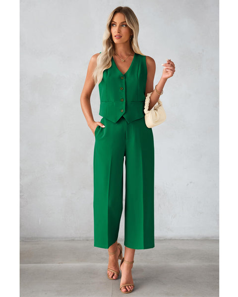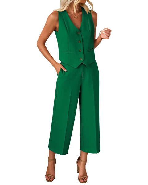 - Our womens suits 2 piece set as well as a matching pair of capri pants with a high rise design, elastic waisted at back, wide leg and two pockets. The versatile pants of going out sets for women provide flexibility in pairing with various tops for different looks.