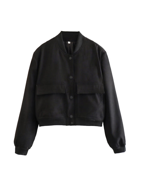 - This womens bomber jacket features button down closure, solid color, long sleeve, stand collar, side pockets, and cool design.