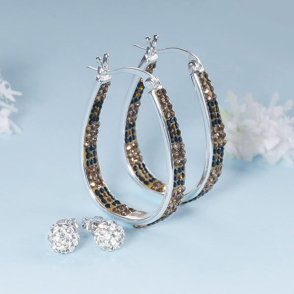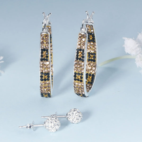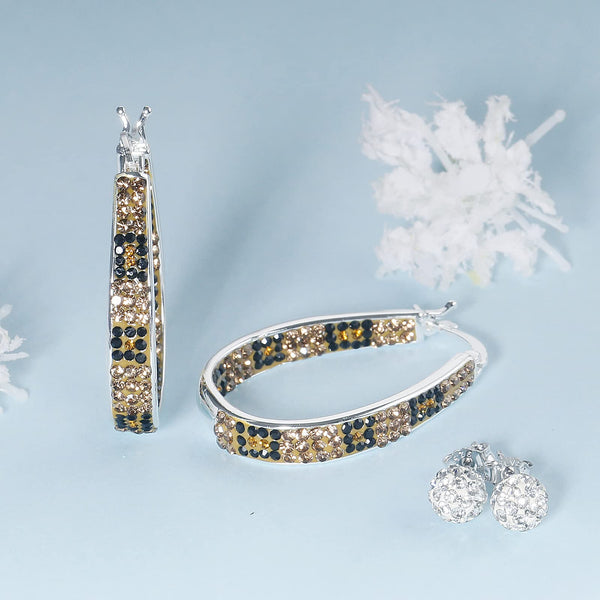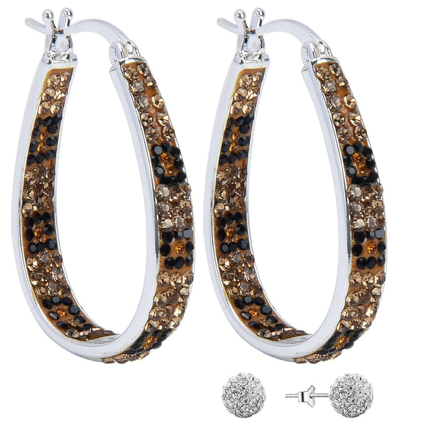 - Oval Inside Out Crystal Hoop Earrings give away a pair of White crystal ball pave bead stud earrings