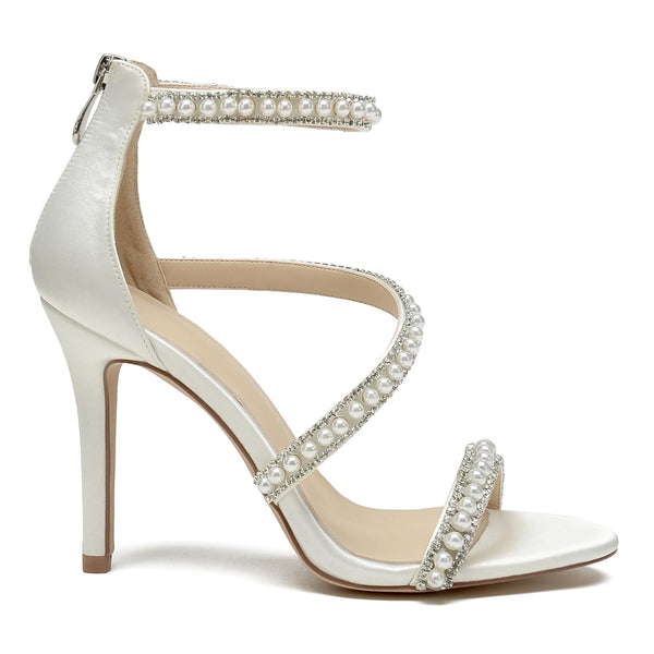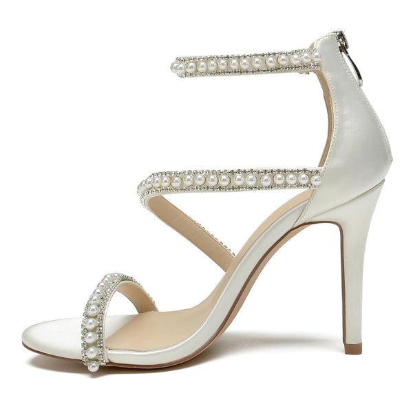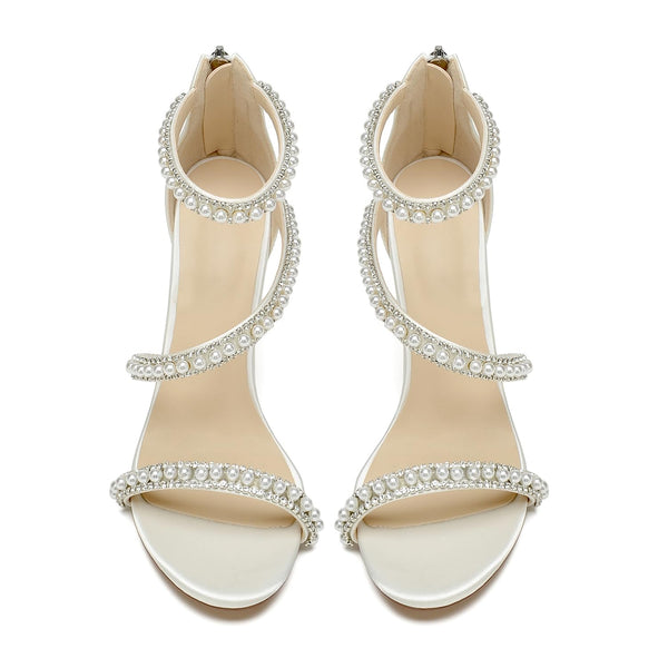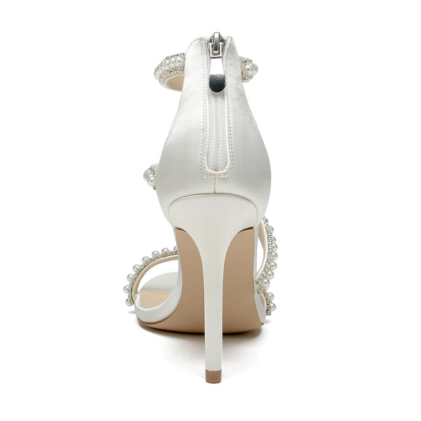 Pearl Heels Sandals Stiletto Heels Open Toe High Heel Sandals Pump Shoes for Women Bride Wedding Party Evening Heels