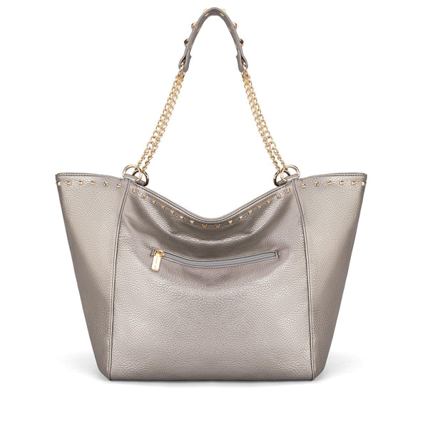 - Unique Design: This women's oversized tote bag is designed with lots of studded inlays and comes with a unique metal chain carry handle, unlocking a style just for you
