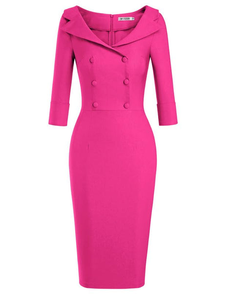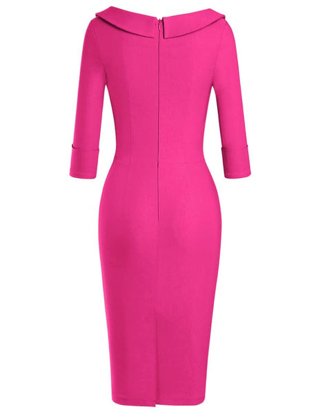 - Ultra form-fitting,extremely comfortable, knee length pencil dress, with a hidden zipper at the back, back slit hem for easy walking