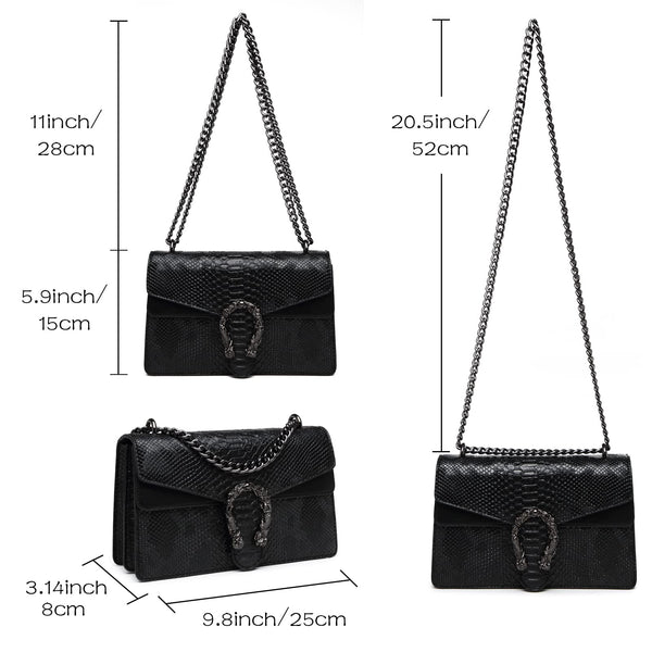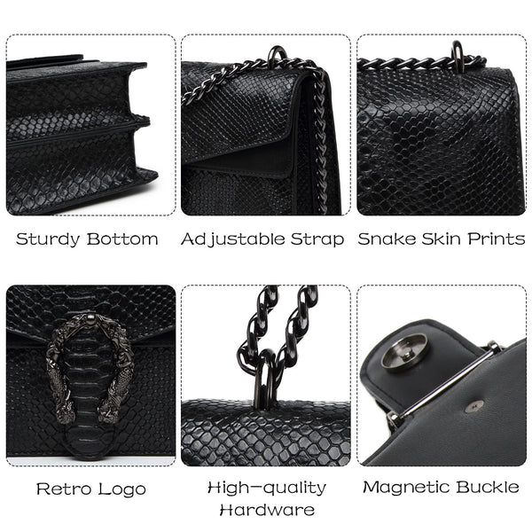 - Structure: The crossbody bag has 2 large main pockets, 1 zip pocket, and 1 open card pocket. Classified storage, concise and clear! The flap of the women's purses is decorated with a metal snake pattern, which is unique.