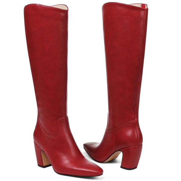 - Beautiful Look and Style: These Knee high boots are very simplistic and smooth from the point to the pull tabs which also give it a very uniform and unique style. The square toe looks modern and also give your foot enough room,Toes aren't scrunched in at the end.