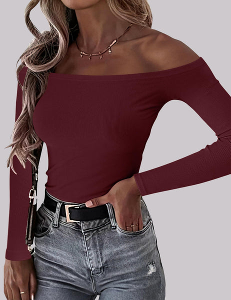 - Sexy Off Shoulder Design: Show off your collarbone with this trendy off shoulder long sleeve top, perfect for a flirty and confident look. The ribbed knit fabric hugs your curves for a fitted, body-hugging silhouette
