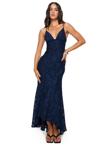 The navy maxi dress that’s made to stand out. With a chic open back and plunging V-neck, this style is perfect for those extra special occasions.