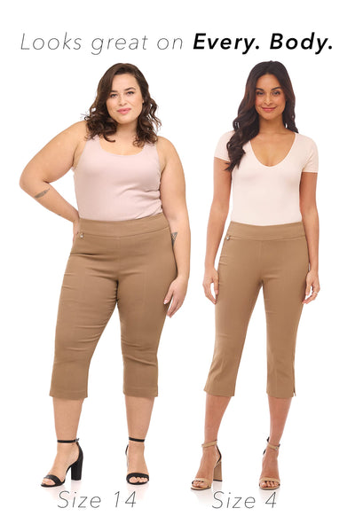 - Modern Straight Leg Fit: Designed with a mid-rise and slim fit through the hips and thighs, these capri pants for women fall straight from the knee with small leg slits for ease and style.