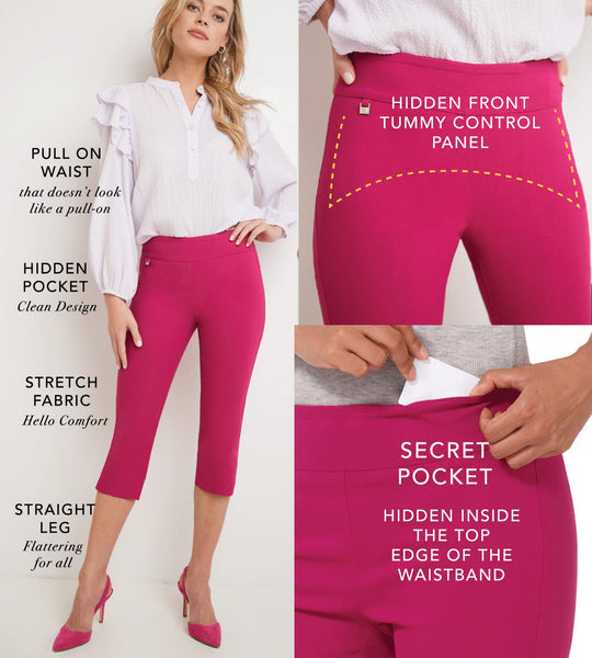 - Pull-On Comfort: These pull on capris for women feature a wide, stretch contour waistband with no zippers or buttons, plus a front tummy control panel for subtle shaping and a smooth look.