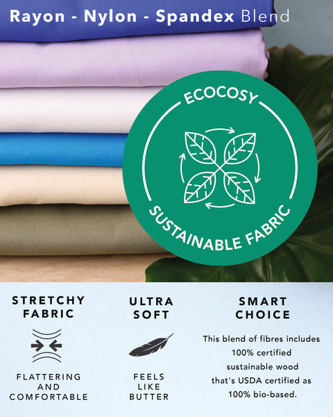 - SUPREMELY SOFT: Butter Soft fabric is silky soft like butter! Stretch for days and ultra comfortable, next best thing to wearing no pants at all. Rayon/Nylon/Spandex Blend.