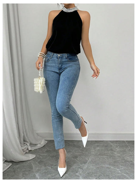 - Features: Blouse for women, beaded, halter neck, sleeveless, casual, elegant