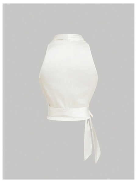 - Features: tank top for women, sleeveless, deep v neck, wrap, tie side, ruched, satin blouse top for women, elegant
