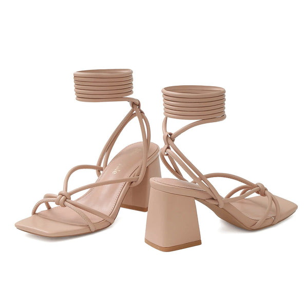 - Trendy Comfortable Design: lace up heels,gladiator,fashion square toe sandals,safe and stable chunky heel,cushioned sole comfortable