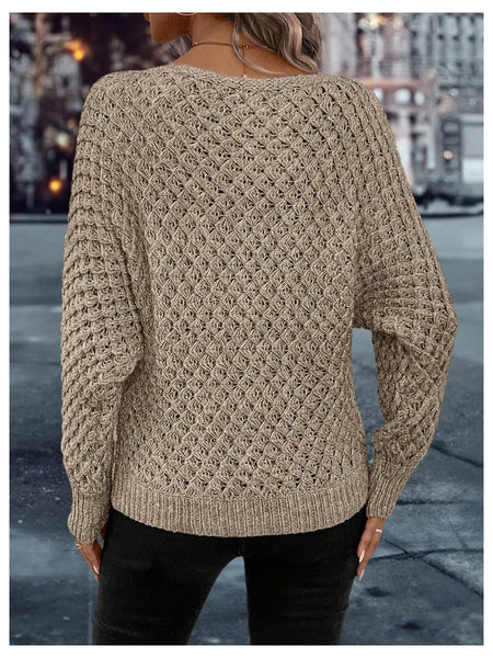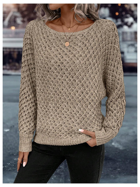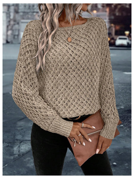 - Women sweater features with long sleeve, boat neck, off shoulder, crochet knitted, hollow out, regular fit