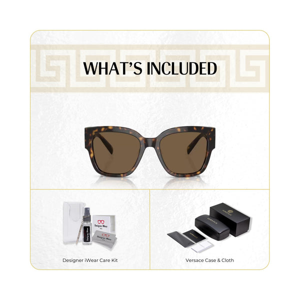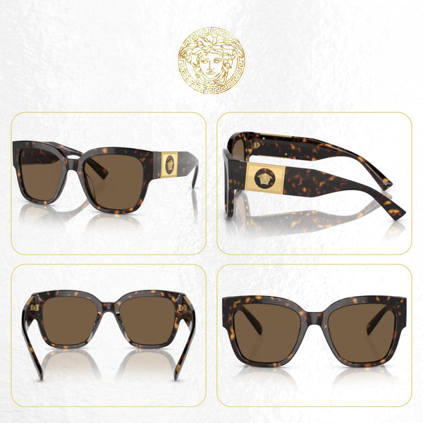 - Introducing the Versace VE4437U: These bold square sunglasses combine modern sophistication with iconic Medusa accents, embodying timeless luxury. Crafted for women, they feature a full-rim acetate frame and polarized lenses for enhanced clarity and 100% UV protection. Perfect for elevating your everyday look with style and functionality. Color code: 108/73.