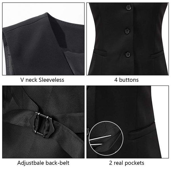 - Casual & Elegant Looking:Women suit vest is designed with classic solid color, Sleeveless ,V-neck, Real insert Pocket ,handkerchief hem . The back adjustable Waistcoat offers a more accurate fit, makes you stand out in the crowd.
