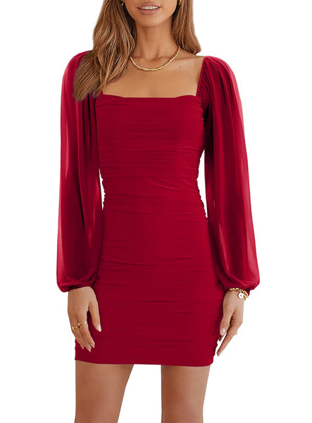 - Square Neck: The unique square neck hoco dress adds a modern sophistication to your outfit, and the elegant mesh long sleeves add a classy appeal, making you stand out at any party or club occasion