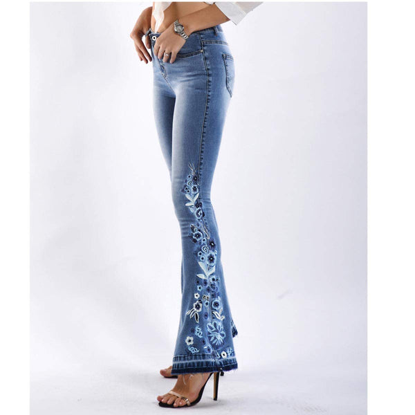- This retro floral embroidered jeans,to highlight the leg line,elongated proportions,will become your new love.