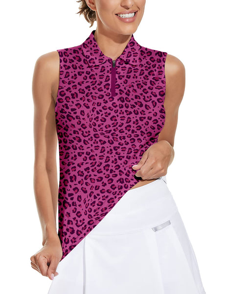 - 【Womens Polo Golf Tank Top Detail Design】: Print golf shirt for women/quater zip golf polo/sleeveless athletic polo shirts is designed with 1/4 zipper, lapel collar, and a pique textured finish. Unique print with V neck becomes the highlight of women's polo shirts. Lightweigh fabric to keep you comfortable and moving with ease