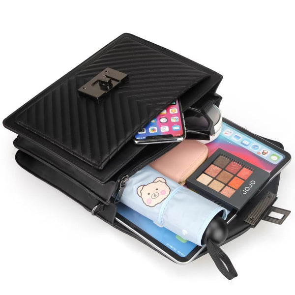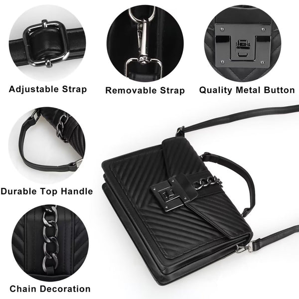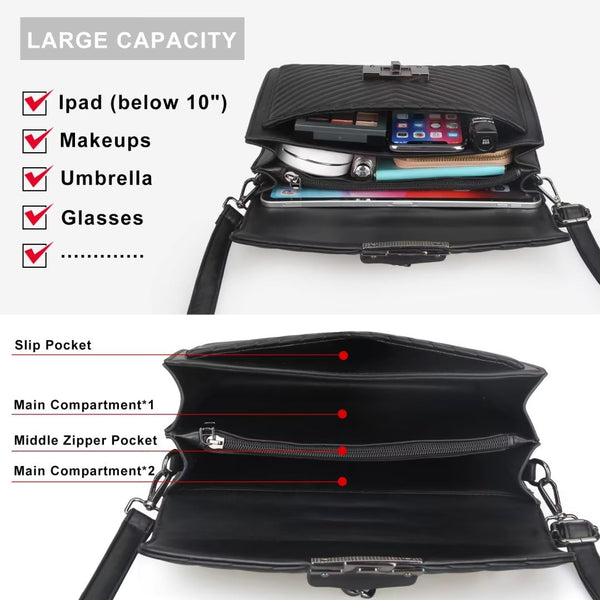 - Premium Material: Made of durable faux leather, it looks luxurious. Flap with turn-lock closure.