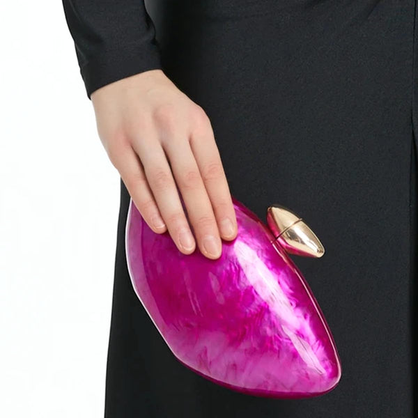 - MATERIAL: This shell clutch purse is made of high quality acrylic, the shape of shell is the most popular element nowadays. This acrylic purse is chic and can be matched with different colors and styles of clothes, it is a super cute gift for ladies and teenage girls.