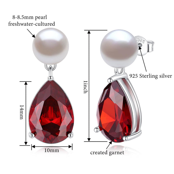 - Size & Stones: Pearl stud with teardrop gemstone earrings high: 0.98"(25mm), set with 2 pieces 12x14mm pear-shape garnet red zircon.