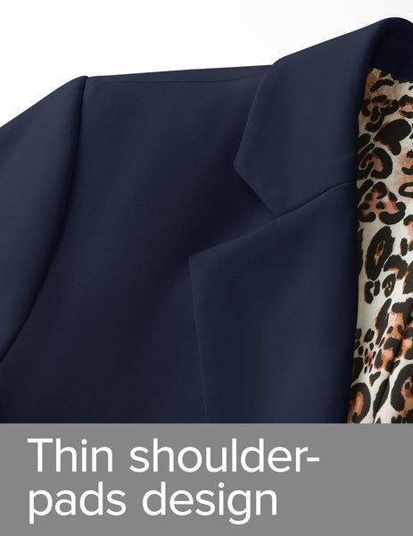 - Material: Crafted from a soft, lightweight fabric that feels comfortable against the skin, this jacket is lined with a luxurious leopard print. The combination ensures ease of movement, making it great for office or for casual outings.